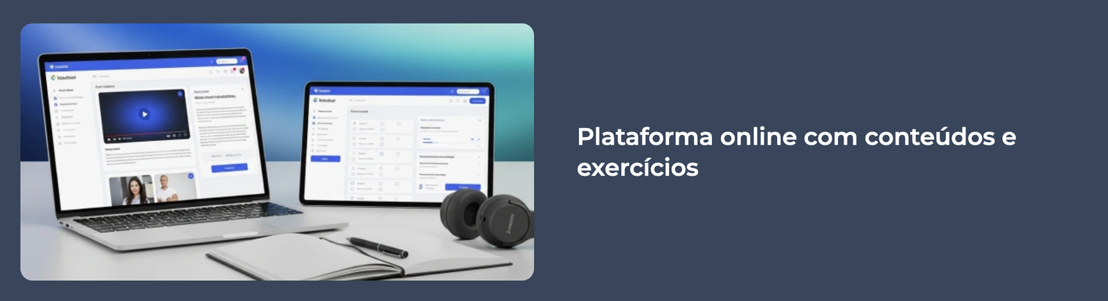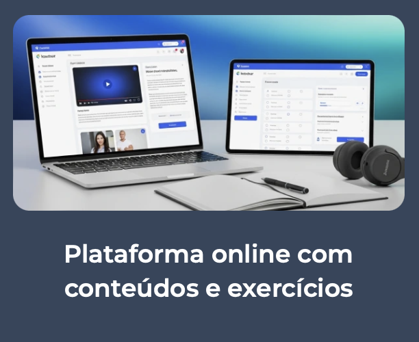 Assim você consegue estudar com constância, prática e acompanhamento, mesmo com a rotina do dia a dia.